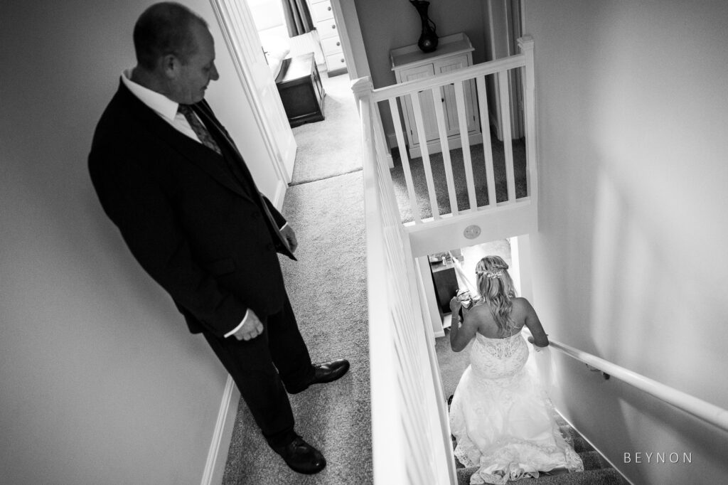 Some of the small moments are my favourite, like Alice taking a peak at arriving guests from the window of the bride prep room at The Redhouse Barn, Steph wiping away a tear during her and Ali’s ceremony at Sheene Mill, Ellen’s Dad watching her walk downstairs on her way out to the ceremony, the mothers of the Bride and Groom dancing arm in arm during the evening reception at my Leeds Castle wedding and a sight I’m probably never going to see again: a bridesmaid practising her walk down the aisle in the men’s toilets!