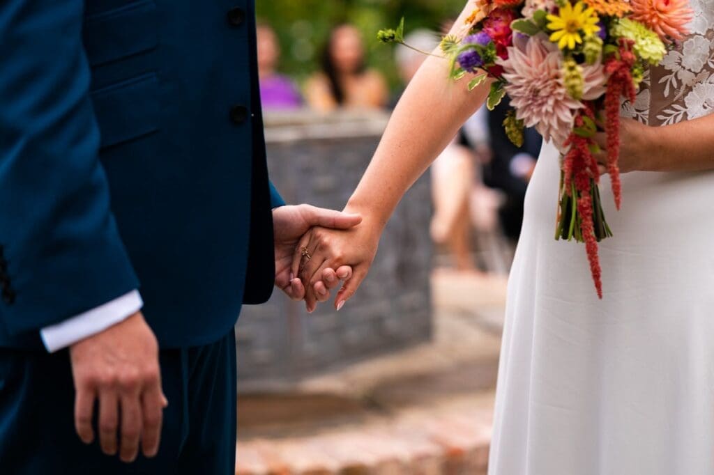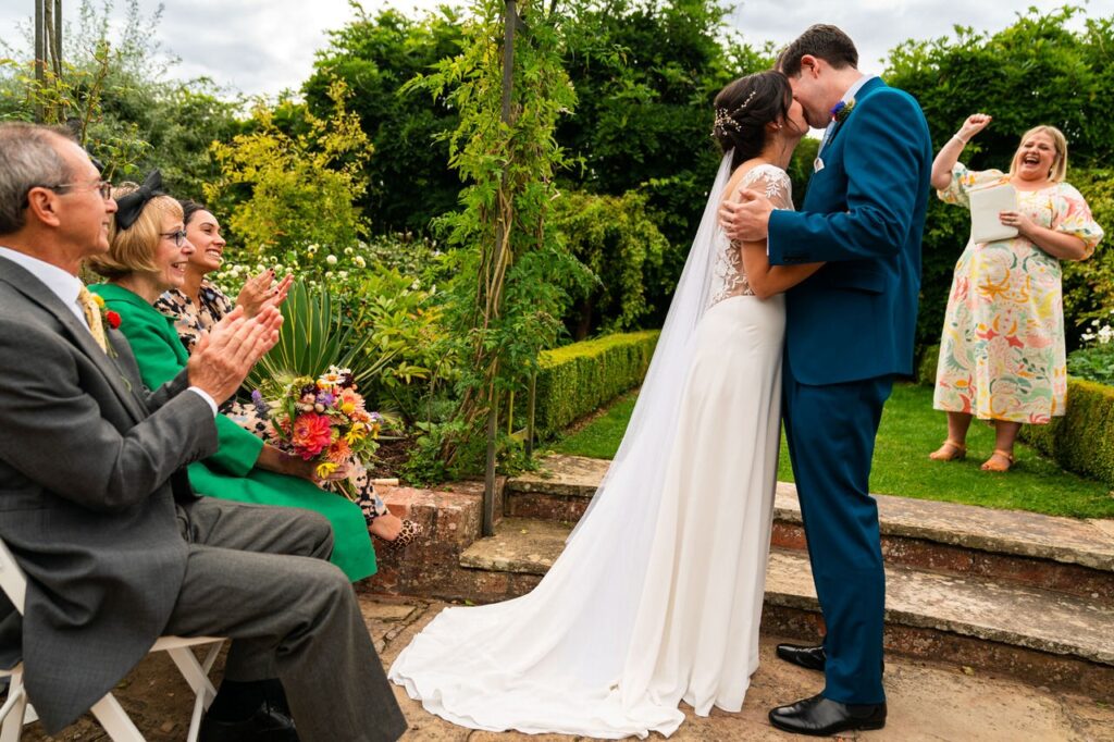 For a photographer it’s ideal as without the rules that are often imposed on us by registrars or vicars we have the freedom to move around more and capture a more diverse set of images. Which is ideal in a setting such as the White Garden at Birtsmorton Court which has so much room. During the ceremony they had a ring warming. A ring warming ceremony is a tradition that involves passing around the wedding bands to guests. Upon receiving the rings, guests “warm” them up with a prayer, good wishes, or positive vibes for the couple’s future together. I’ve seen this three times over the past 18 months and it’s a great way to include your guests in the wedding ceremony.