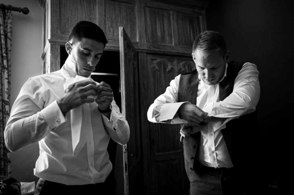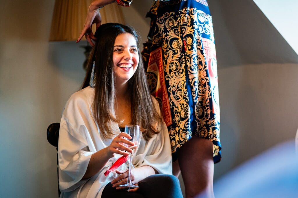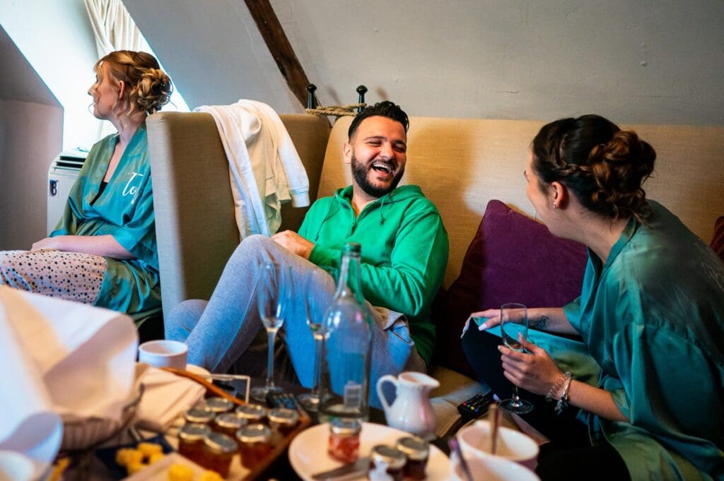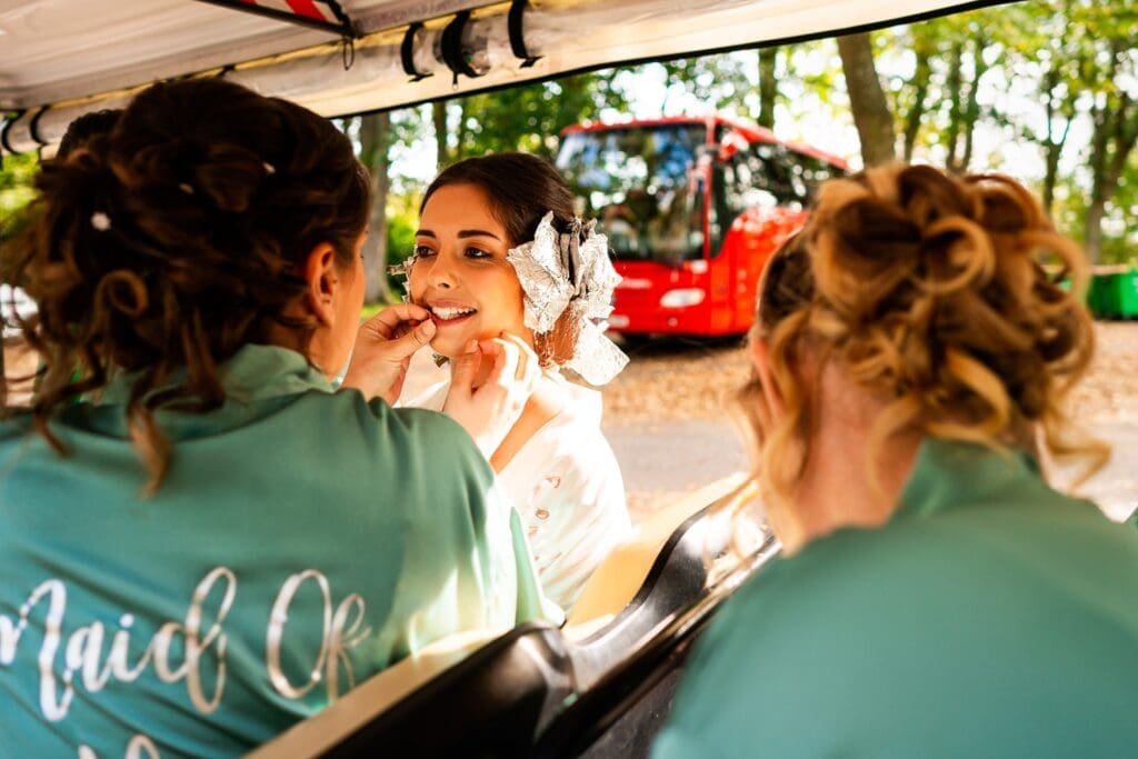 The morning started at a local hotel that Gemma, her bridesmaids and Bridesman had stayed in the night before. Make-up and hair started here before everyone moved across to the Maiden’s Tower for midday. Gemma still had her hair foils in as we headed over to the Castle, which was quite a sight! We were able to use a special car park inside the main ground and were taken over to the castle island via large golf buggies. After getting settled in one of the main bedrooms Gemma was under strict instructions not to leave as Harry turned up with his Groomsmen shortly after and Bride and Groom prep continued in adjacent rooms.