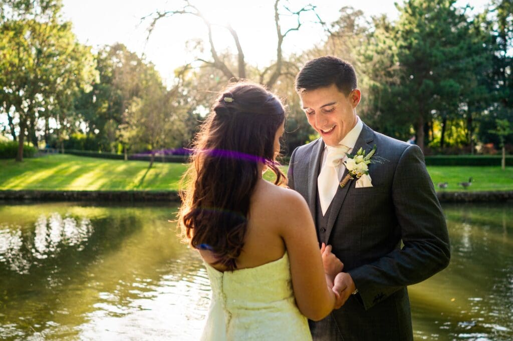 About half an hour before the wedding breakfast seating Leeds Castle’s attentive staff ushered the guests up towards the Fairfax Barn to be seated. Meanwhile Gemma and Harry took some time away from the hubbub of the day and I took the opportunity get a few images for the happy couple together in the beautiful grounds surrounding the castle island. Although I am always keen to capture genuine moments which I feel hold the most value when people come to view their photos in the many years to come, a relaxed session with couple so they have some images together is an important part of the day, as long as it doesn’t dominate proceedings. There’s nothing worse than a couple being dragged off for an hour for staged shots, if my couple’s shoot take more than 15 minutes then it’s taking up way too much time up!
