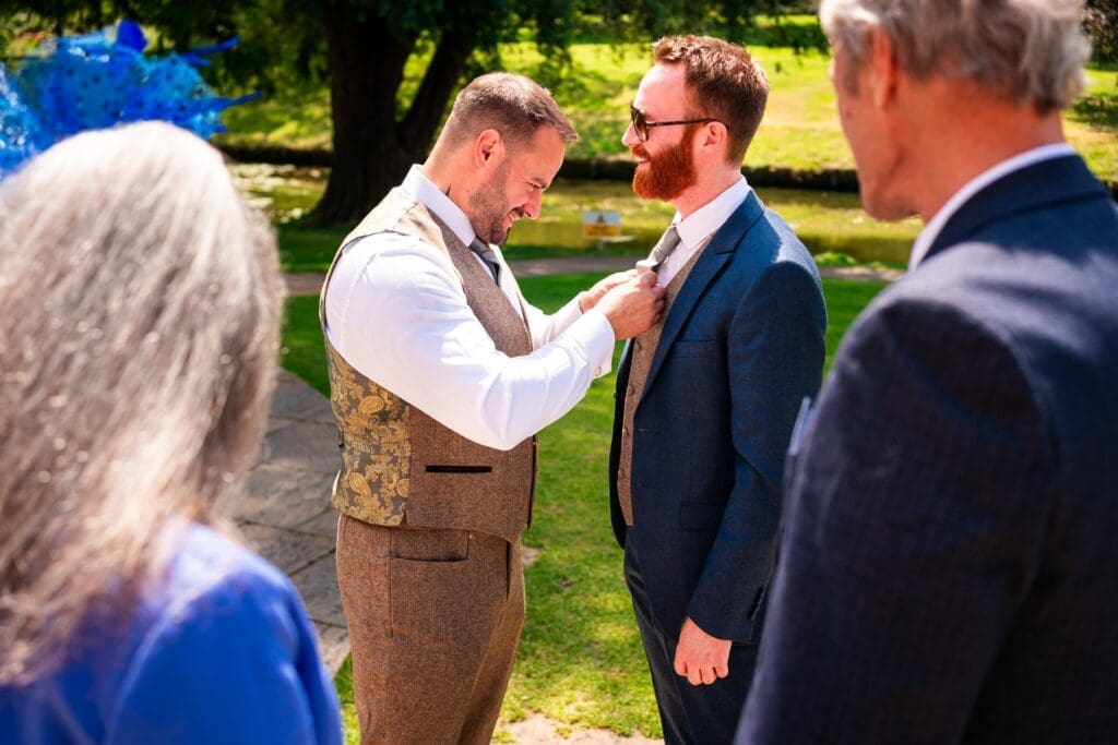 They had planned for an outdoor ceremony up at the Lapa, with its beautiful lakeside view . I was keeping my fingers crossed that the weather would be kind to us on the day, which luckily it was. Although I was keen for Sarah & Rob to have their outdoor ceremony, from a photography point of view I was quite relaxed about going with plan B in the case of rain. The Orangery’s Garden Room is a brilliant backup. The huge glass fronted doors which the couple and guests face during the ceremony and the glass roof and mirrors around the back wall mean it’s got a better quality of light than most venue’s Plan A indoor ceremony room.