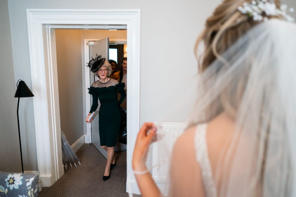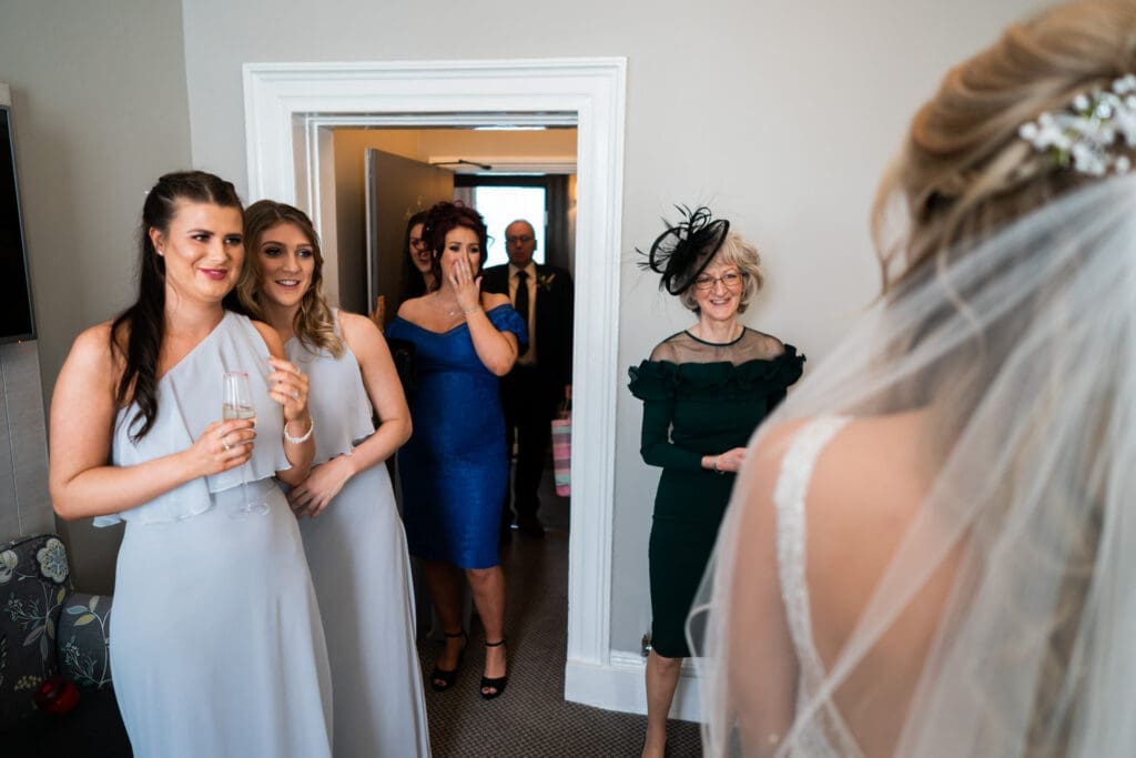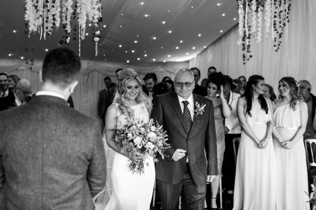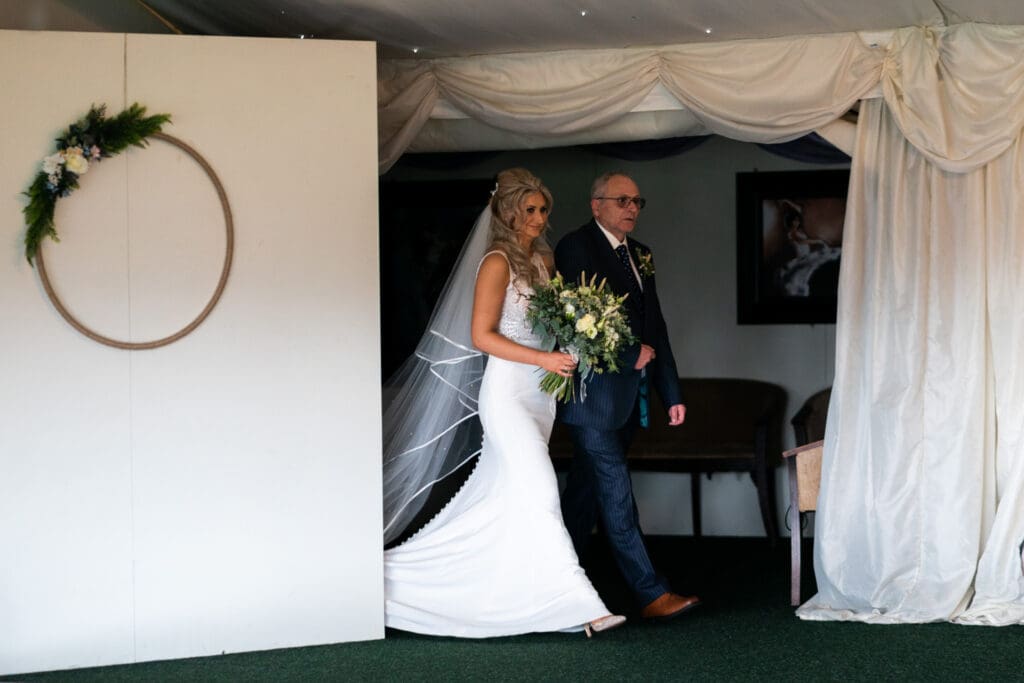 Camilla took the standard route used at the School House to the ceremony – through the kitchens, which is always good for a shot at this venue as I love the contrast of a bride in her dress, with hair and make-up done being guided through the bowels of the venue. About as un-glamorous as you can get, right before the headline moments as you walk down the aisle!