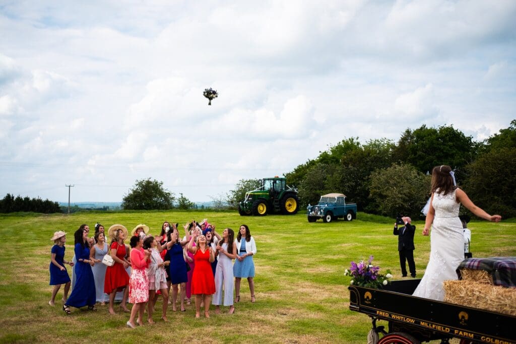 Warm cloudy days are my favourite conditions to photograph a wedding and the weather for Grace & Richard’s Tipi wedding in May 2019 did not disappoint. Set up on Grace’s family farm near Pershore in rural Worcestershire, the tipi was big enough to hold 150 guests and was the perfect backdrop for a beautiful day. Both families are local farmers which meant there was an obvious theme for the day.