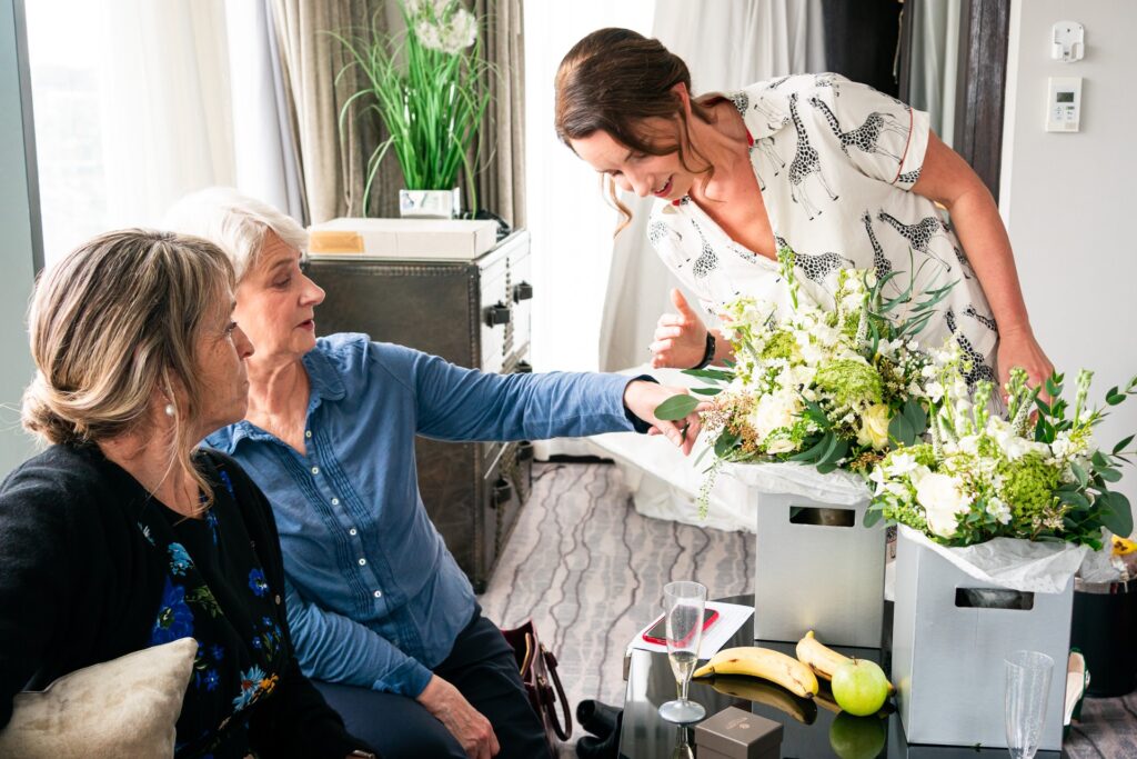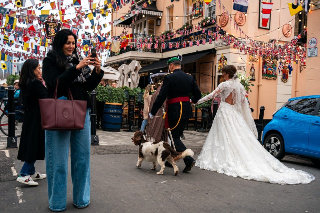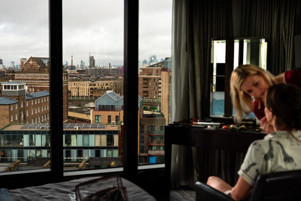 My morning started with a quick look around the chapel and the tavern to set my bearings and take a few scene setting shots. At the Trafalgar things were starting to come together as staff laid tables and the flowers arrived. I bumped into Ellie’s dad who was picking up the main bouquet to take over to her hotel. Since he had to drive over to the hotel I hopped in the car with him rather than get an Uber. I love little unpredictable moments like that on a wedding day and it’s great to spend a bit of time with key members of the wedding party early on in the day and get a rapport going. I think morning prep coverage is important for this reason. While the photos are great, getting everyone used to me being there and photographing them early pays off later in the day. Everyone feels relaxed around me as I’m treated like a natural part of the day and this leads to better photos throughout the day.