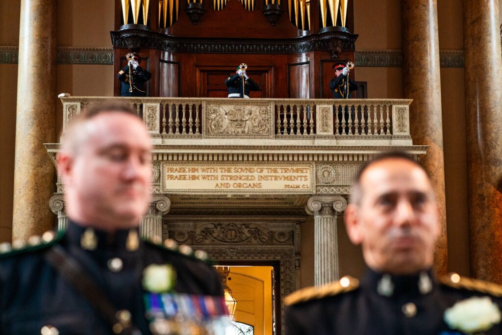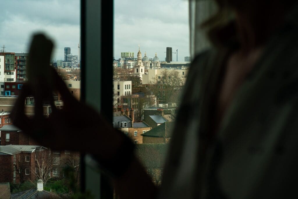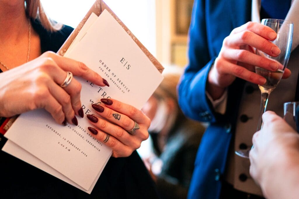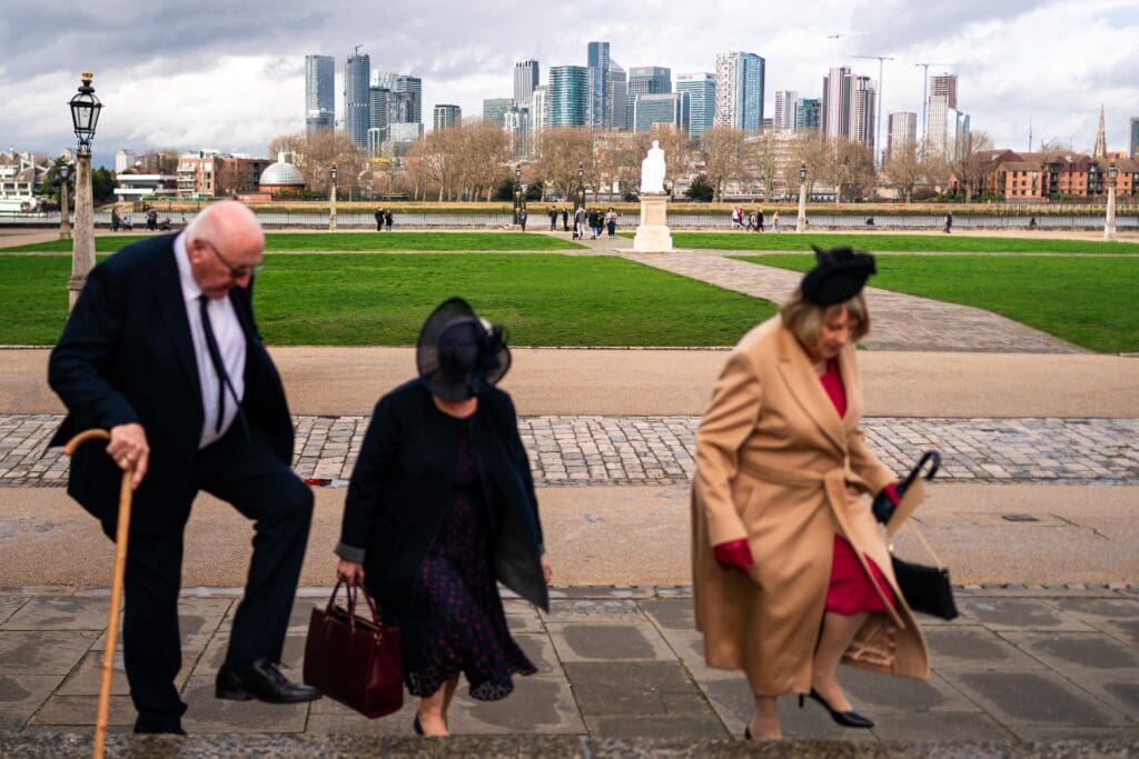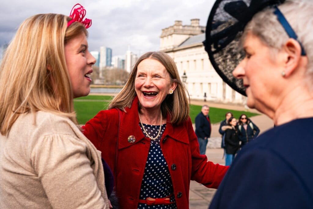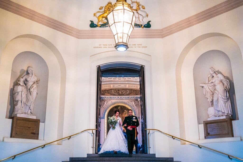 Over at the hotel things were quiet and calm. Ellie had opted not to have a big bridal party to keep things simple and meant her morning was nice and relaxed as she chatted with her mother and one friend during her hair and make-up. I left ahead of the bride with her mother and a few family members in a taxi to capture arrivals at the Royal Naval College. The choice of ceremony location was a very personal one for Ellie & Si as Si’s dad had been the chaplain of the college’s chapel in the 1980’s and Si himself had entered the military. Guests arrived to the sound of a military piper, which attracted members of the public and tourists who took in the sight of gathering uniforms and well-dressed guests outside of the chapel.