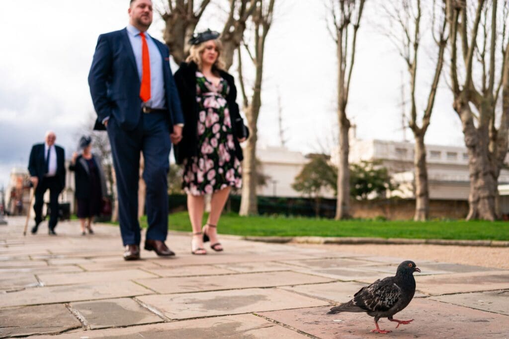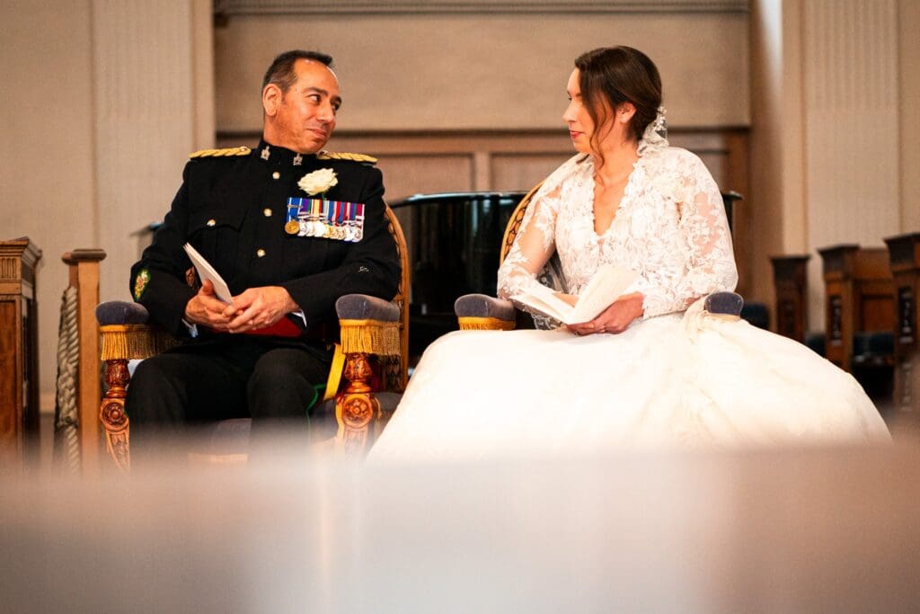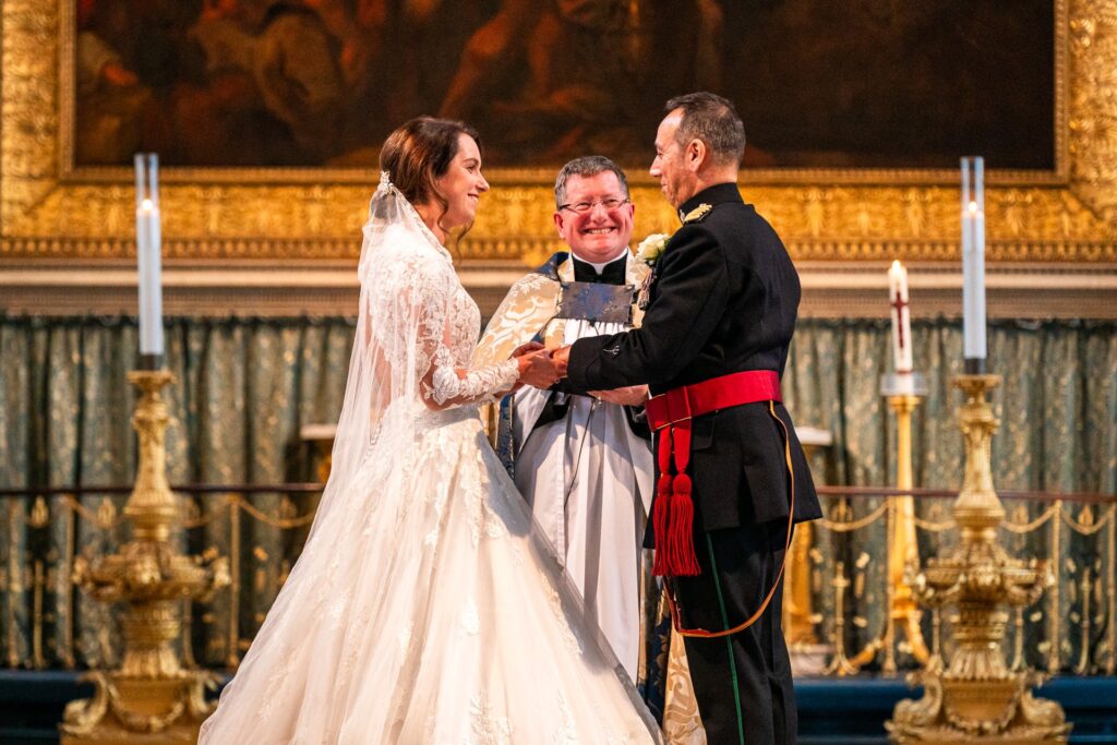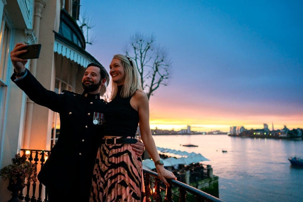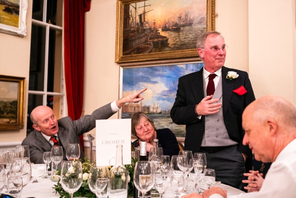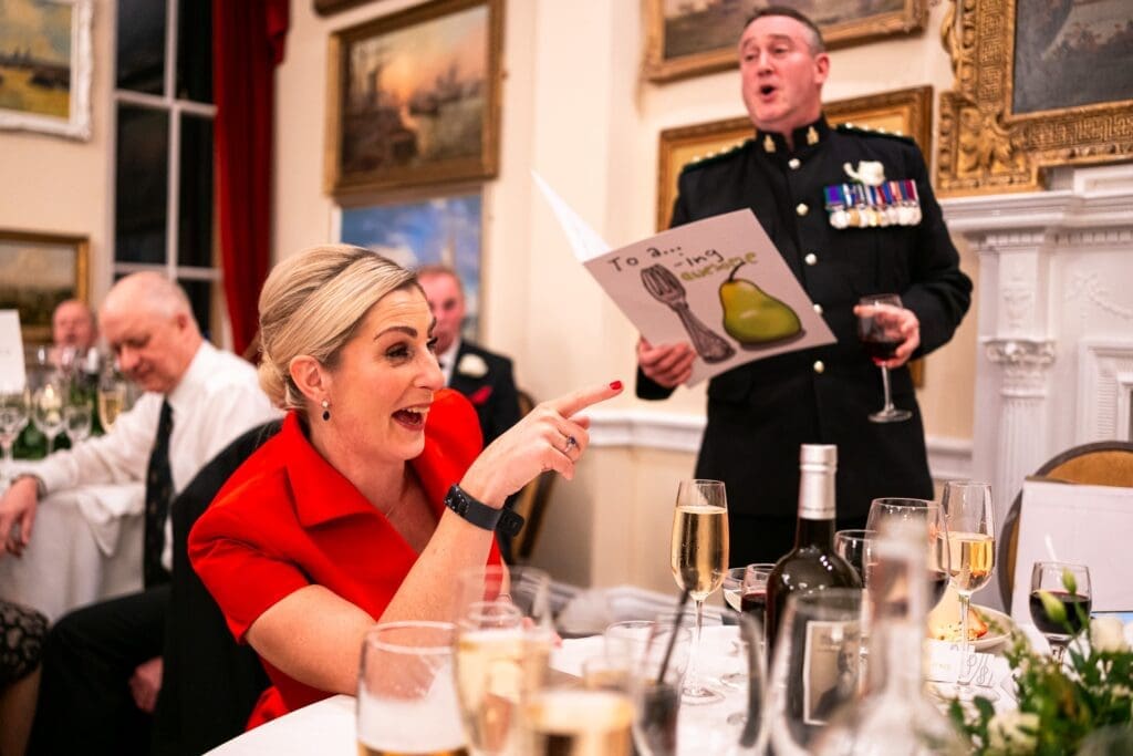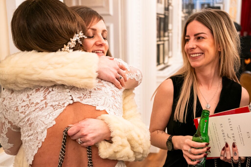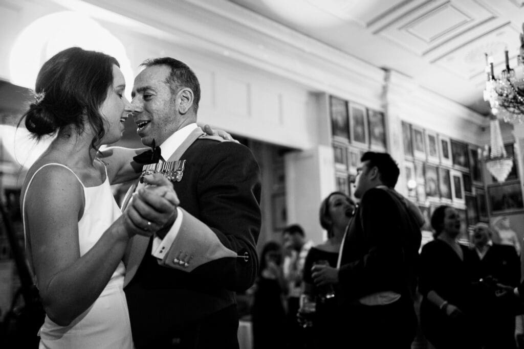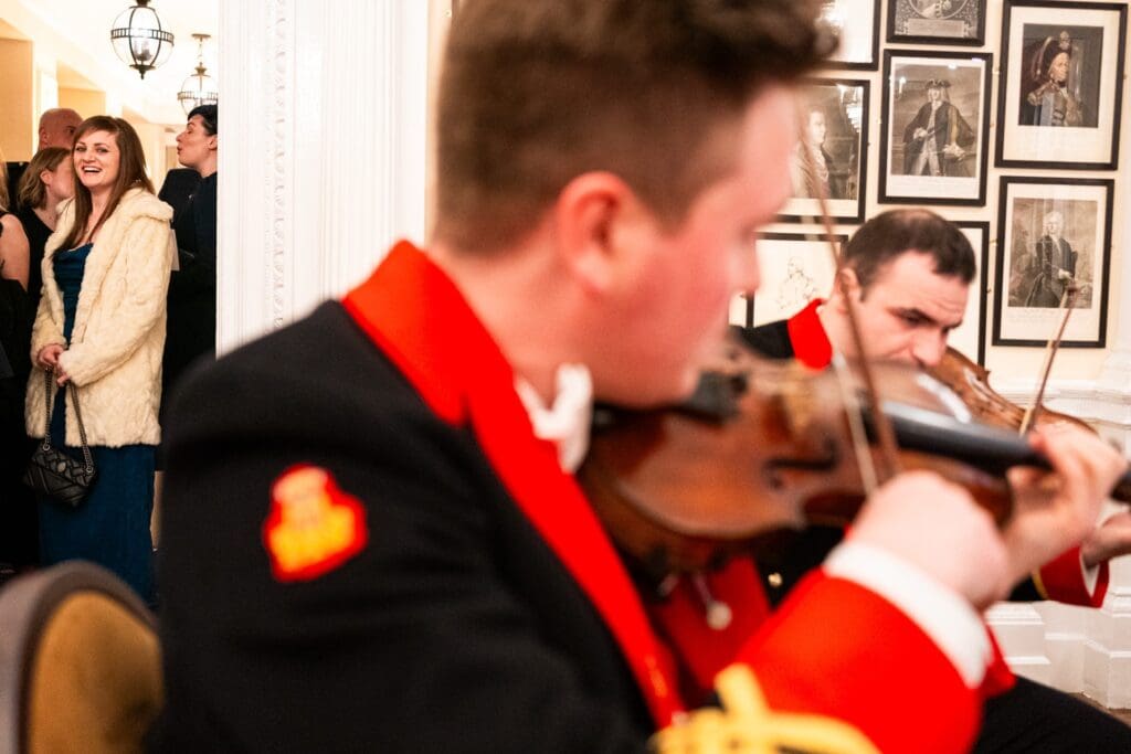 After the ceremony the newlyweds walked out under a traditional military honour guard before having a small drinks reception on the grounds of the college for around 15 minutes. We were then led the 5 minute walk over to the Trafalgar Tavern by the piper to continue the drinking and mingling.