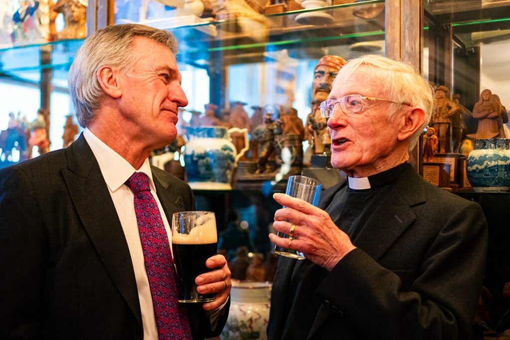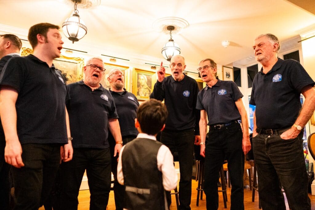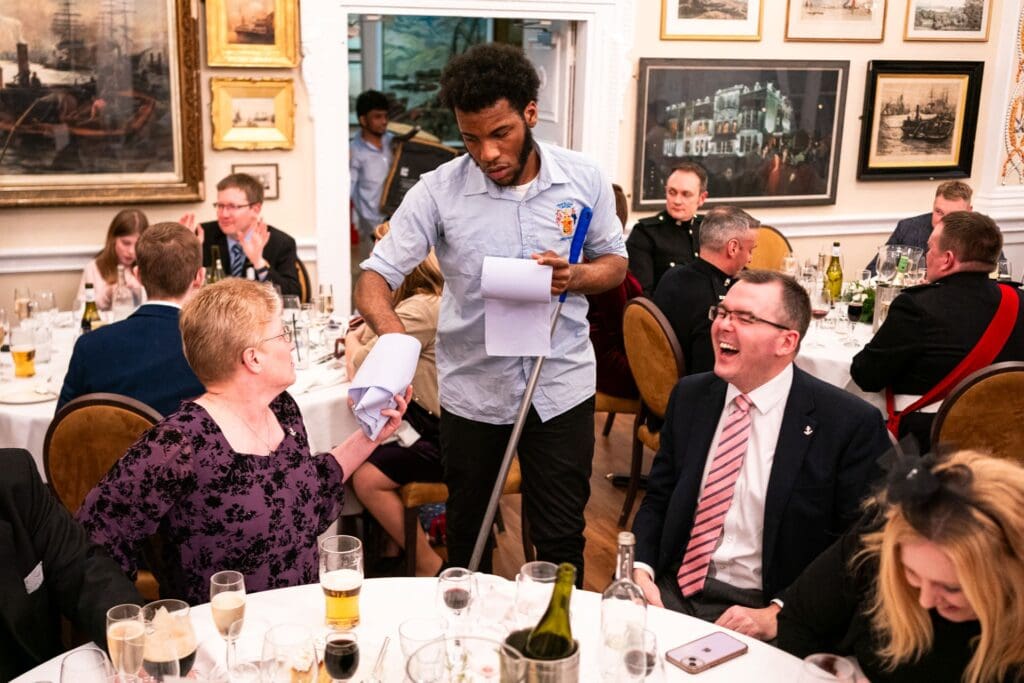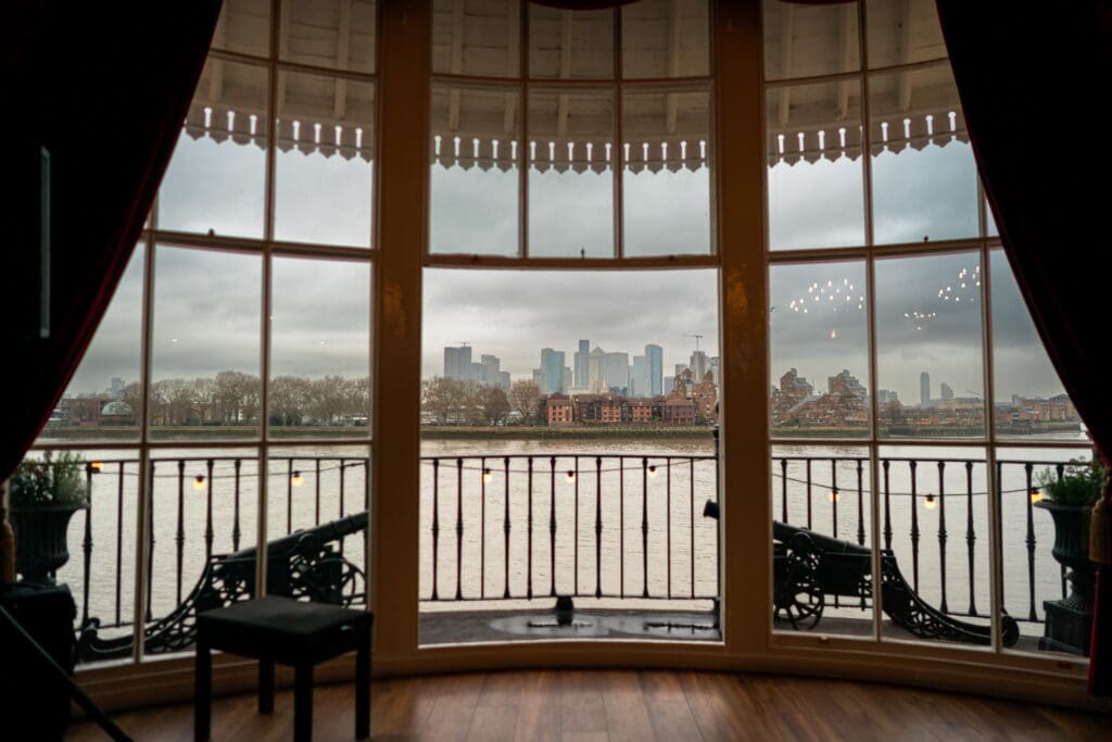 Once we arrived at the Trafalgar a sea shanty group kept up the naval theme and sang traditional sea songs as guests mingled in the upstairs The Hawke and Howe Bar. We had been lucky with the weather, it was forecast to rain for large chunks of the day, but aside from some morning drizzle the day was dry and even had a bit of low winter sun pop through the clouds shortly before sunset which gave us a wonderful rainbow over the Thames, something guests were able to enjoy through the large windows.