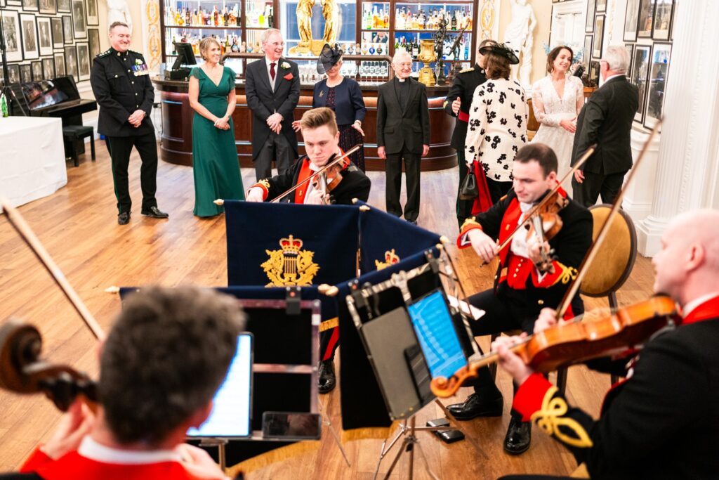 We then moved through to the Nelson Room for a receiving line before dinner and speeches, where a string quartet kept the live music going. In the evening the string quartet gave way to a DJ and the couple and their guests partied the night away.